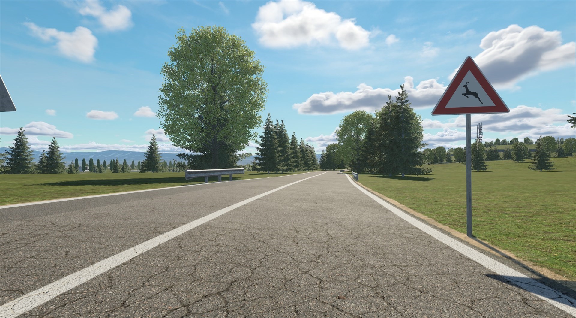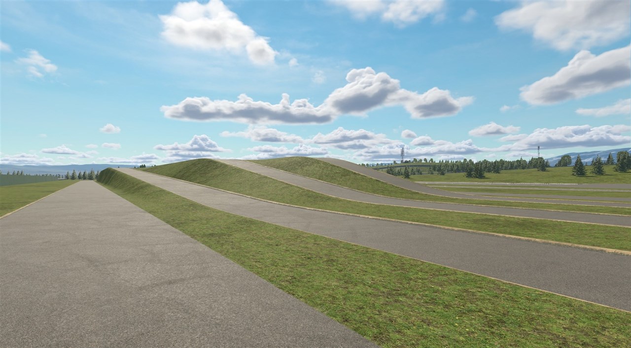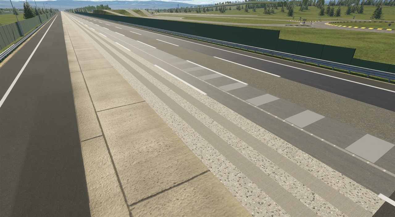 Specialized Testing Areas: Including ride lanes with various surface types, a 3.2 km handling track, a 1.15 km rally track, and a 2.4 km country road based on real-world laser scan data.