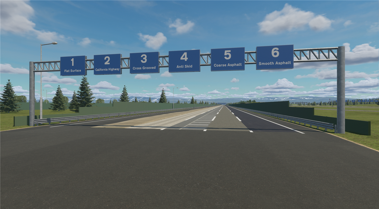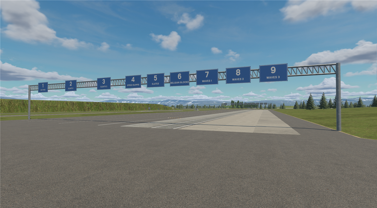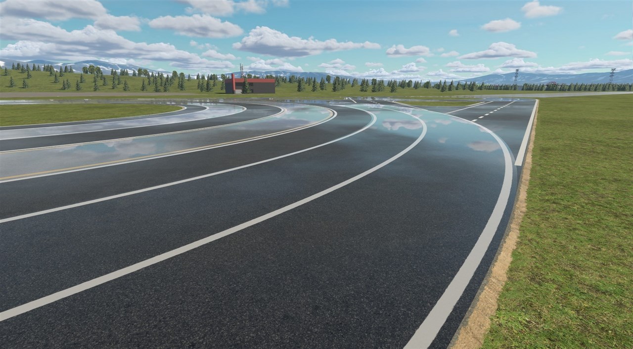 Diverse Road Conditions: Featuring ramps with varying gradients, event lanes with different surface irregularities, and specialized areas for split friction coefficient testing and wet condition simulations.