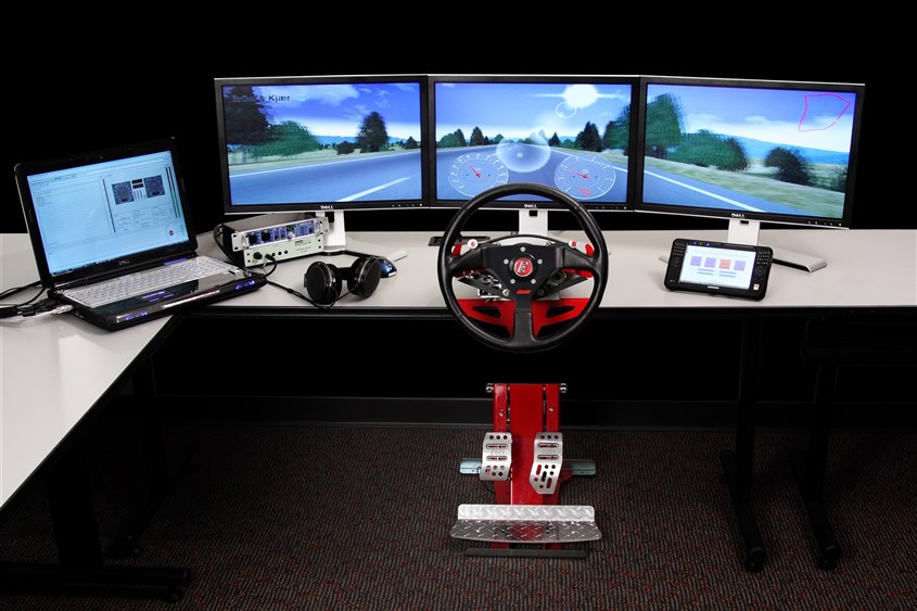 Zusätzlich verfügt das SimCenter Millbrook über einen VI-grade DESKTOP NVH Simulator, der mit einem Lenkrad und Pedalen ausgestattet ist. Dies ermöglicht dem Fahrer, mit dem Fahrzeug zu interagieren und seine Geräuschkulisse in Echtzeit zu erleben. Das Fahrzeuggeräusch wird über Kopfhörer oder Lautsprecher hochpräzise wiedergegeben. Dadurch können Geräusche des Fahrzeuges während des Fahrens wahrgenommen werden, wie z. B. Schalten und Beschleunigen oder der Wechsel zwischen glatten, rauen oder unebenen Fahrbahnen. Dieser immersive Kontext für Geräuschuntersuchungen hilft Entwicklungsingenieuren sowie Laien gleichermaßen bei der Wahl der angemessenen Akustik und beim Vergleich von alternativen Designs.
