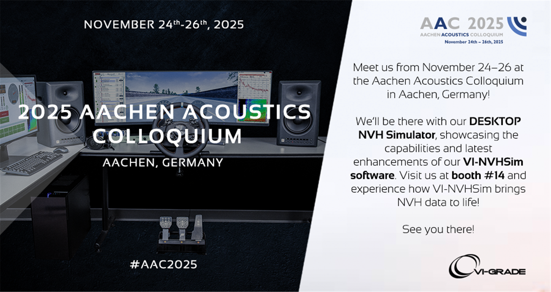 We’ll be there with our DESKTOP NVH Simulator, showcasing the capabilities and latest enhancements of our VI-NVHSim software. Visit us at booth #14 and experience how VI-NVHSim brings NVH data to life!