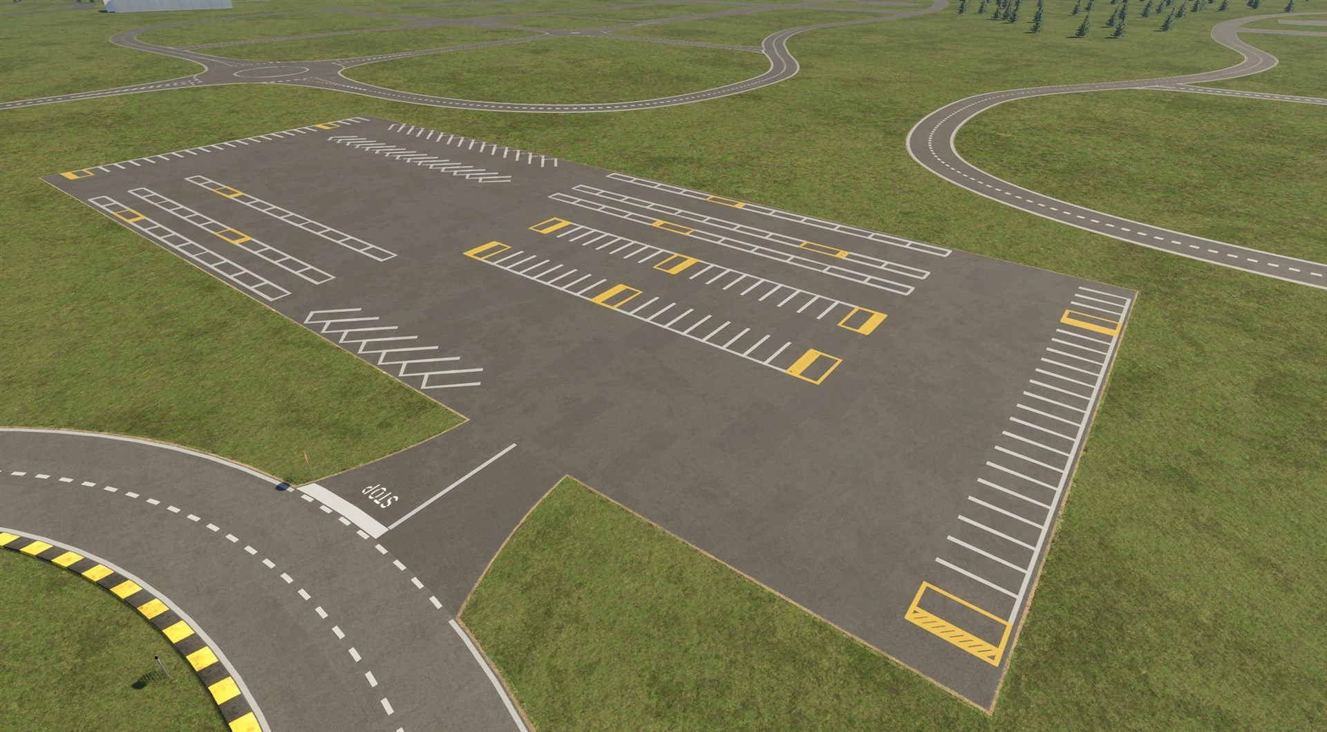 Diverse Road Conditions: Featuring ramps with varying gradients, event lanes with different surface irregularities, and specialized areas for split friction coefficient testing and wet condition simulations.