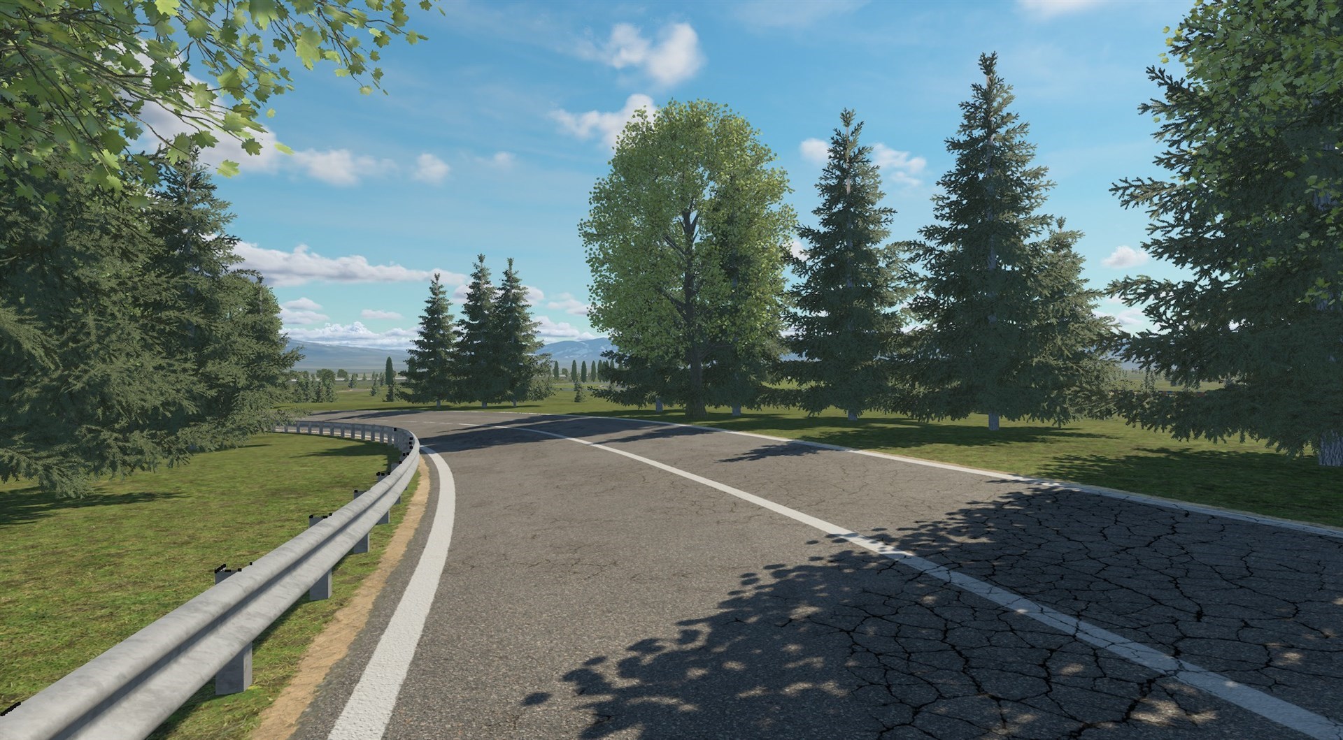 Specialized Testing Areas: Including ride lanes with various surface types, a 3.2 km handling track, a 1.15 km rally track, and a 2.4 km country road based on real-world laser scan data.