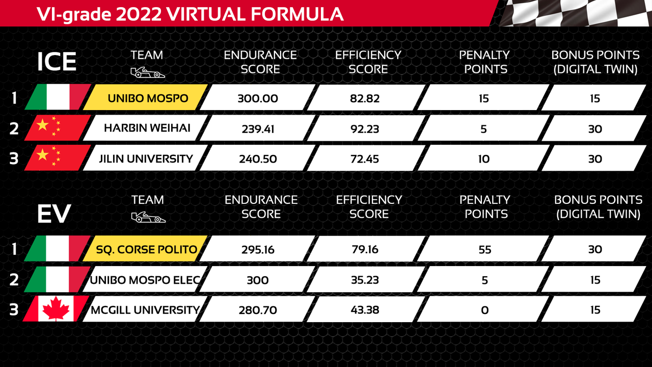 Here below you can find the full ranking of the 2022 Virtual Formula competition: